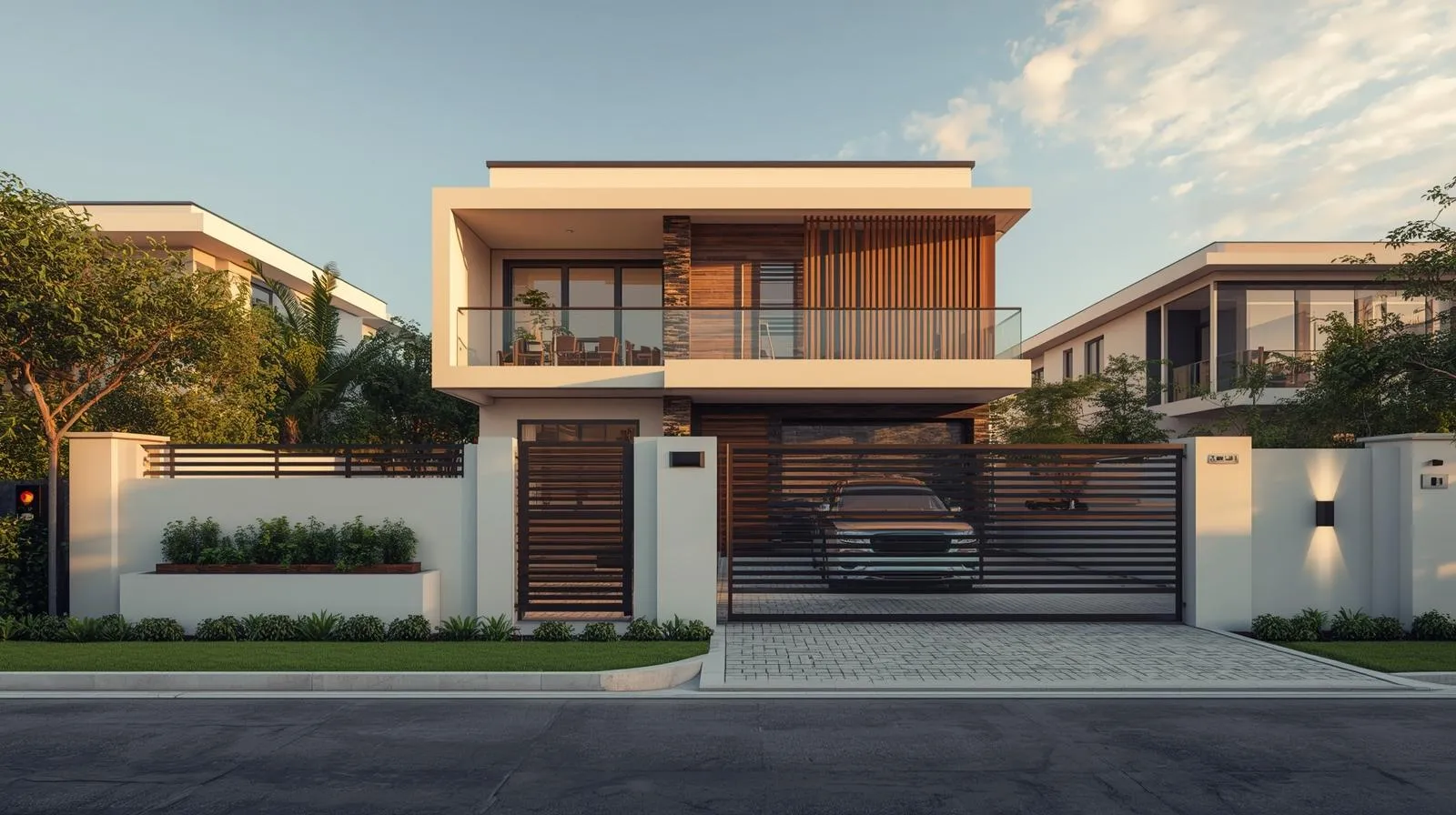 Highlights: Corner plot feel, airy layout, modern gate, calm residential lane